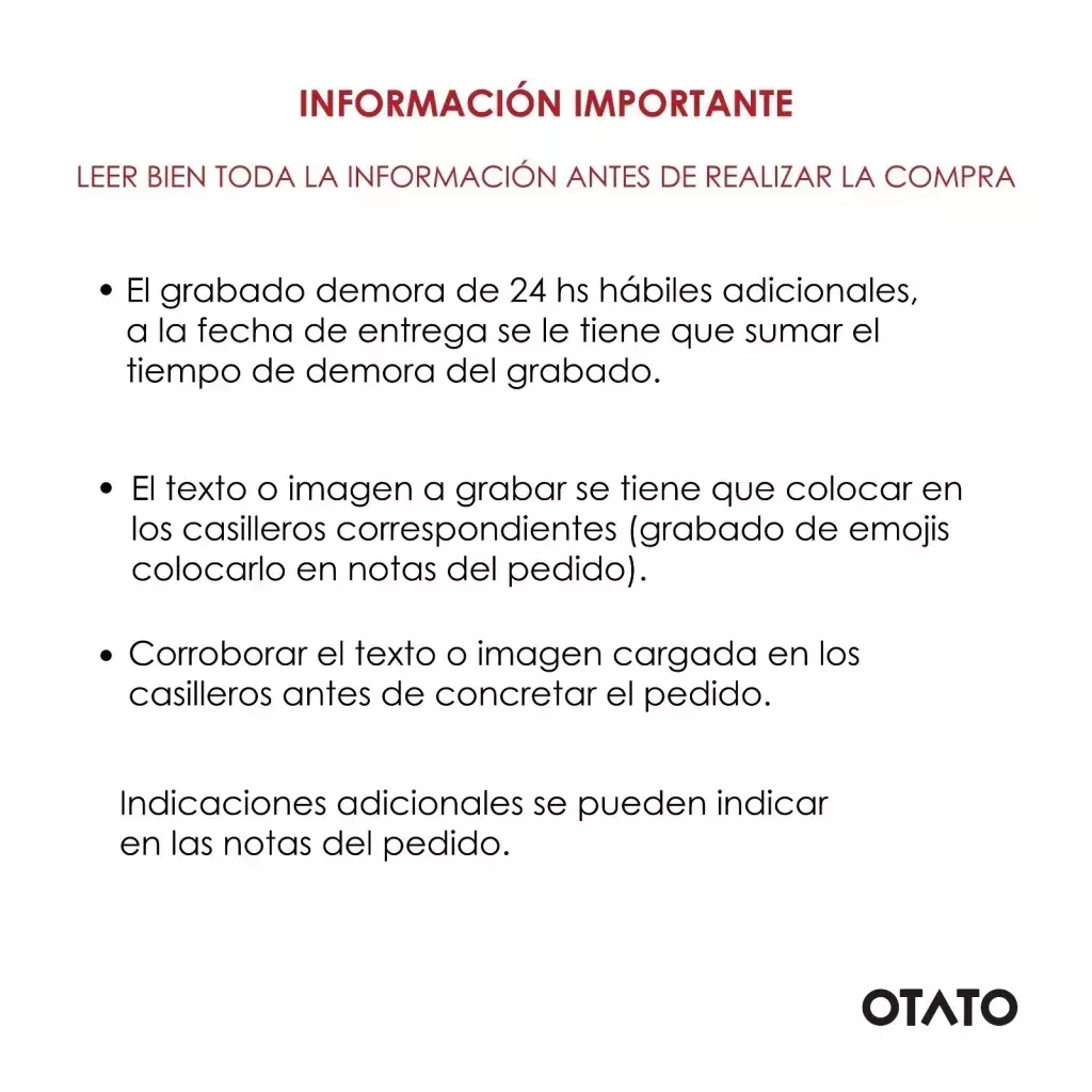 Tambien se puede hacer un segundo grabado en la otra cara, podes grabar dedicatorias, frases, nombres y muchas opciones mas.